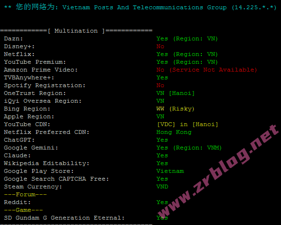 - 越南双ISP VPS确实是家宽属性,原生越南IP,解锁很丰富;
