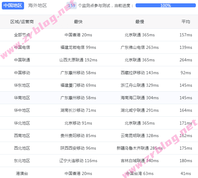 国内三网和港澳台ping测试,来自itdog一百多个节点:
