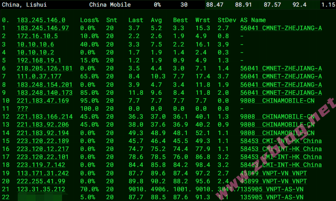 移动回程跟电信一样,也是出机房VNPT到香港转CTGNet回国