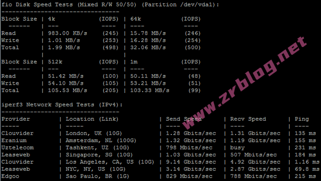 - 机器性能还不错,IO被限制了,带宽充足,这次我认真看了,下单的时候也可以选择带宽限速,不选择默认就是10Gbps端口;
