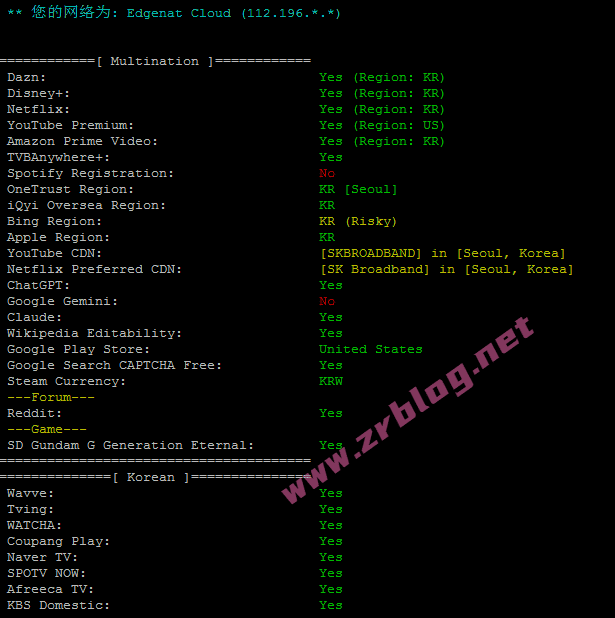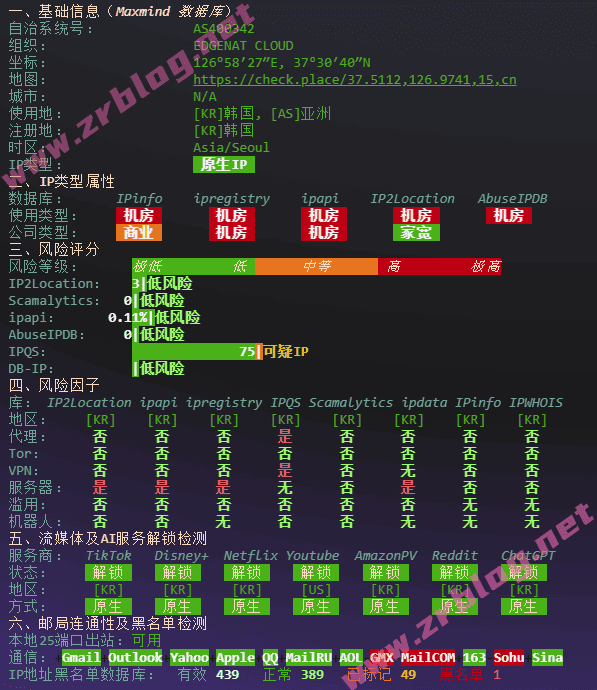 IP信息:韩国原生IP,机房IP,解锁全绿
