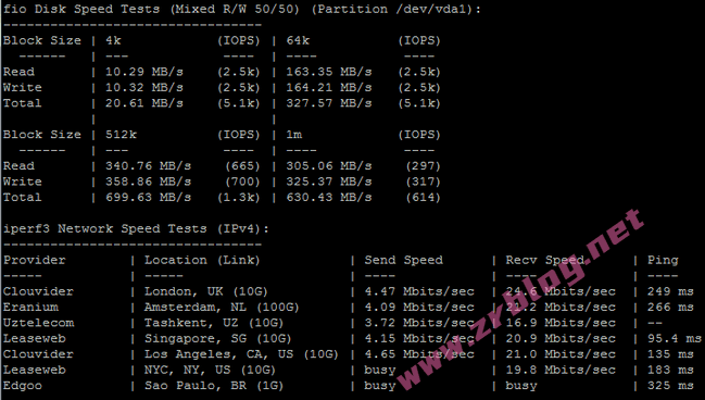 bench一键包磁盘IO和带宽信息:I/O大概在348MB/s的样子
