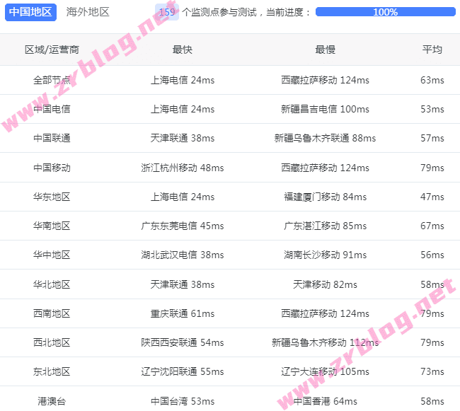 国内三网和港澳台ping测试,来自itdog一百多个节点: