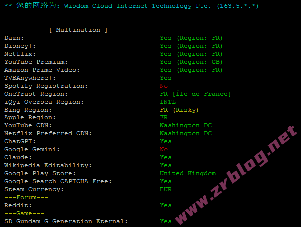 - 法国双ISP属性VPS解锁效果很好,部分识别为家宽,适合开展法国本土业务;