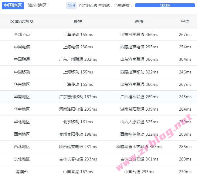 国内三网和港澳台ping测试,来自itdog一百多个节点: