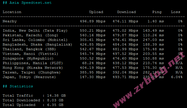 - 新节点VPS性能中规中矩,带宽充足,国内三网访问质量一般(移动会好一些),延迟较高,国内访问建议加中转。