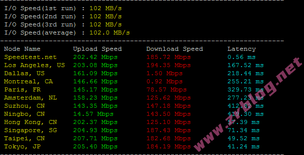 bench一键包磁盘IO和带宽信息:商家IO限制大致102MB/s,200M端口带宽