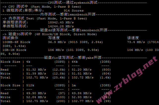 硬件性能测试,CPU跑分、内存读写、磁盘dd和fio读写: