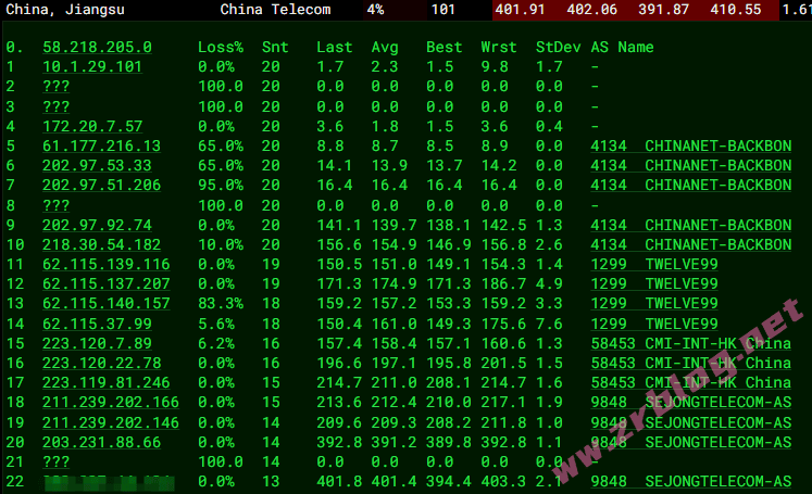 10 61.152.25.169 AS4812 [CHINANET-SH] 中国 上海 chinatelecom.cn 电信