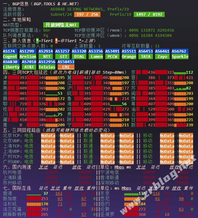 移动去程直连韩国首尔然后走Sejong网络到机房