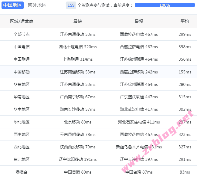 国内三网和港澳台ping测试,来自itdog一百多个节点: