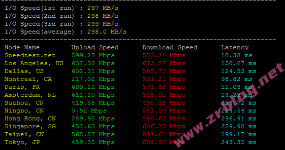 bench一键包磁盘IO和带宽信息:I/O大概在298MB/s的样子