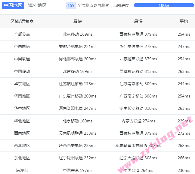 国内三网和港澳台ping测试,来自itdog一百多个节点: