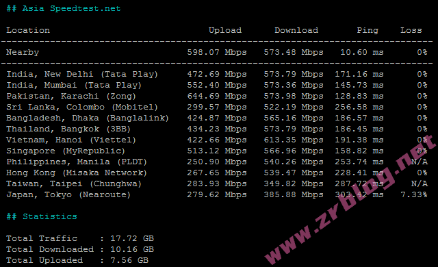speedtest一键脚本部分亚洲节点测速: