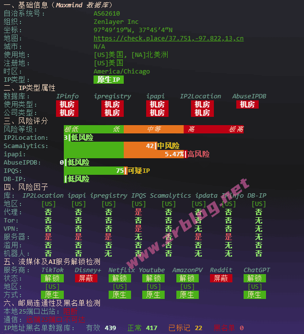 IP信息:原生IP,可以解锁美国TikTok/Netflix/ChatGPT等