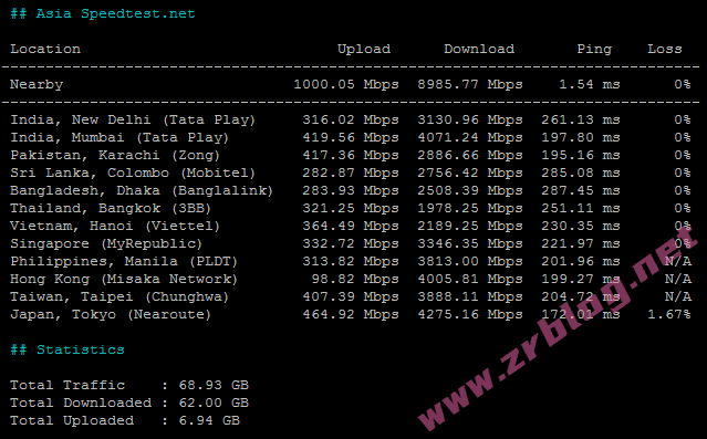 - 带宽充足,测速脚本出来大概出网1Gbps入网10Gbps(创建过程中也可以自行限制带宽);