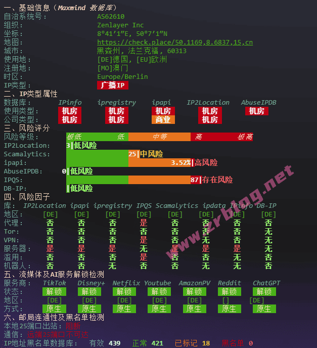 IP信息:广播IP,解锁丰富,包括德国TikTok/Netflix/ChatGPT等