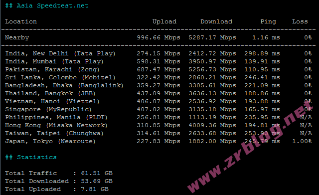 iperf3部分国际节点测速: